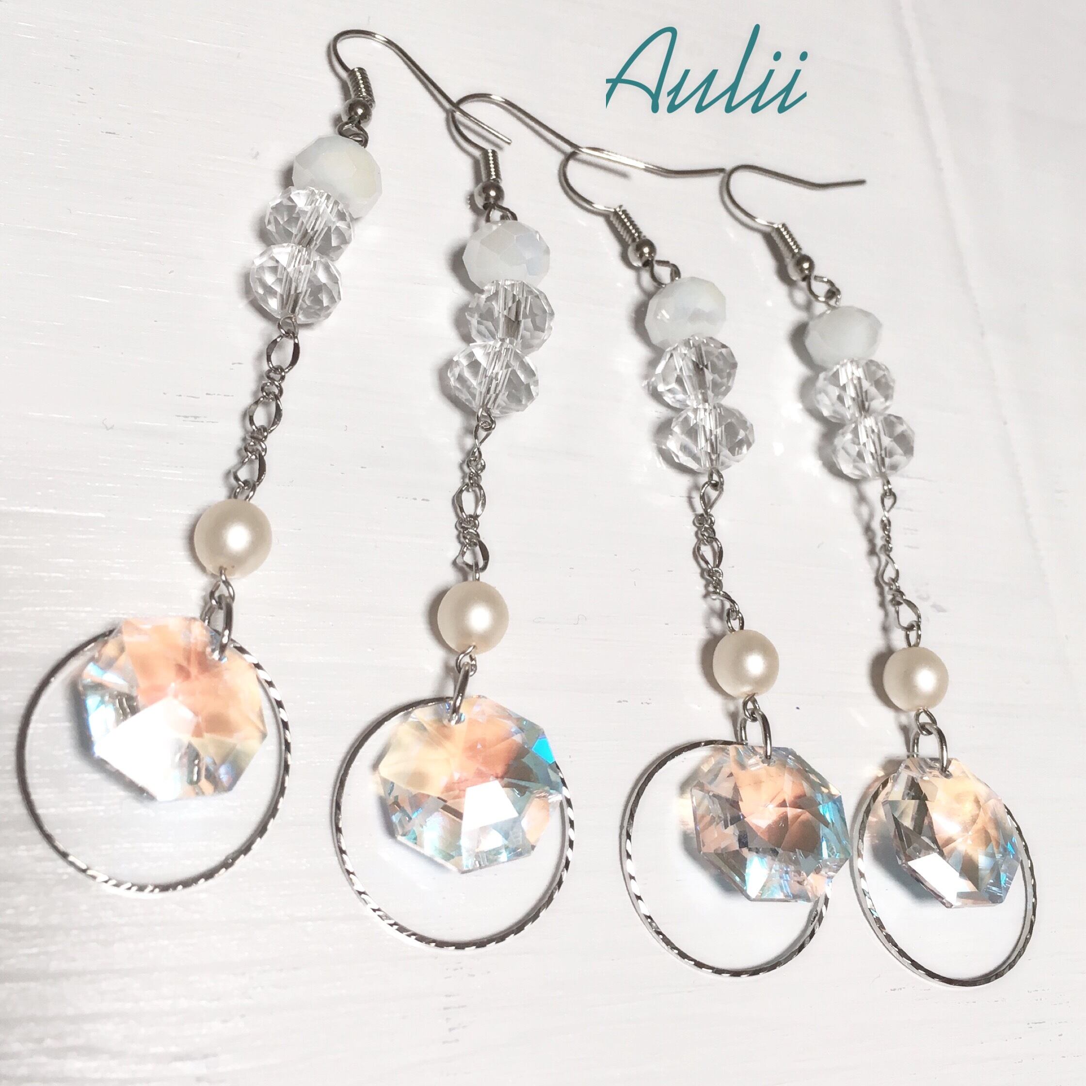 パールと大きな一粒スワロフスキーが存在感あるピアスです